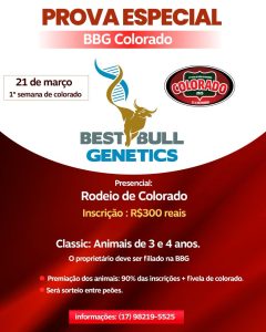 “O Rodeio de Colorado busca sempre trazer inovações que possam agregar e trazer evolução ao nosso esporte, por isso estamos muito felizes em poder realizar esta etapa da BBG este ano. O mercado de genética está muito aquecido e crescendo a cada ano, por isso queremos ser esta vitrine para que os criadores do Paraná possam mostrar seus animais para todo o Brasil,” explica Marcelo Sichieri, diretor de Rodeio da Sociedade Rural de Colorado.