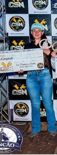 Com treze anos de idade, Isabella Aiello, foi a grande campeã da categoria mirim dos Três Tambores da Festa do Peão de Boiadeiro de Rincão (SP), organizada por Kênia Furtado – KF Organização e Assessoria de Eventos Equestres.